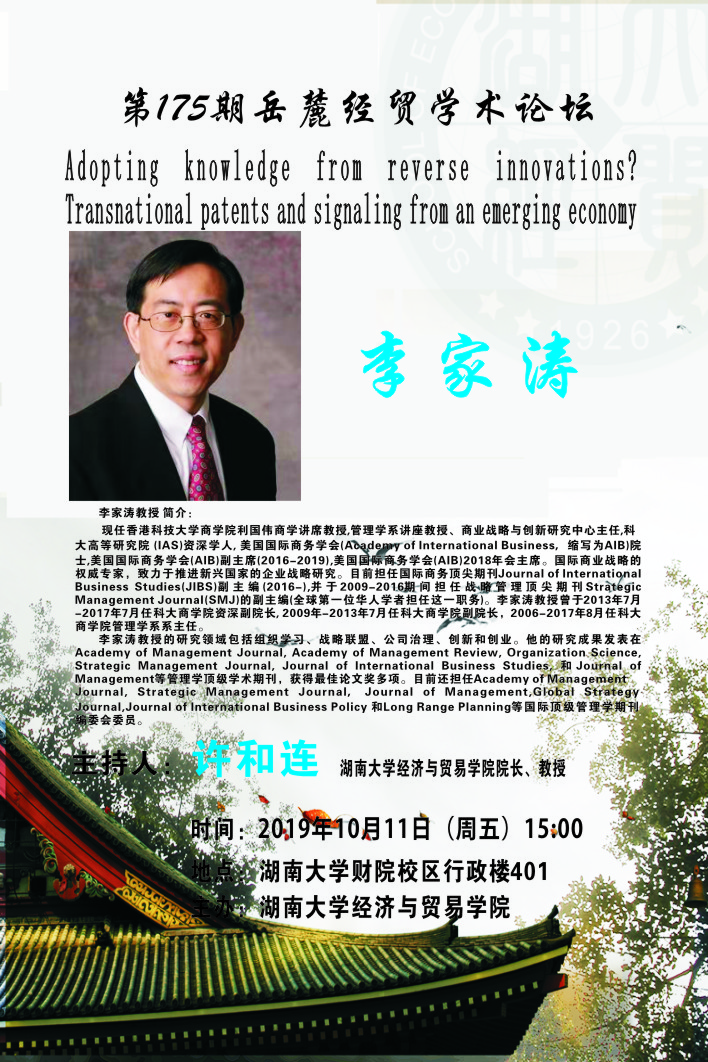 李家涛 香港科技大学 商学院教授、Journal of International Business Studies副主编