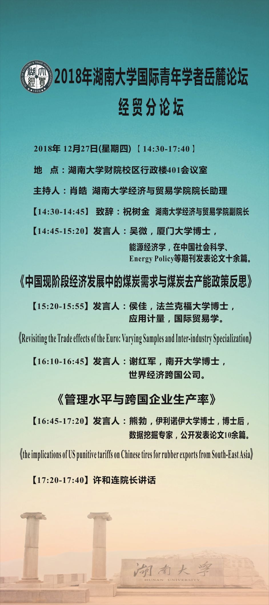 【专题】2018年度yL23411永利集团国际青年学者岳麓论坛经贸分论坛