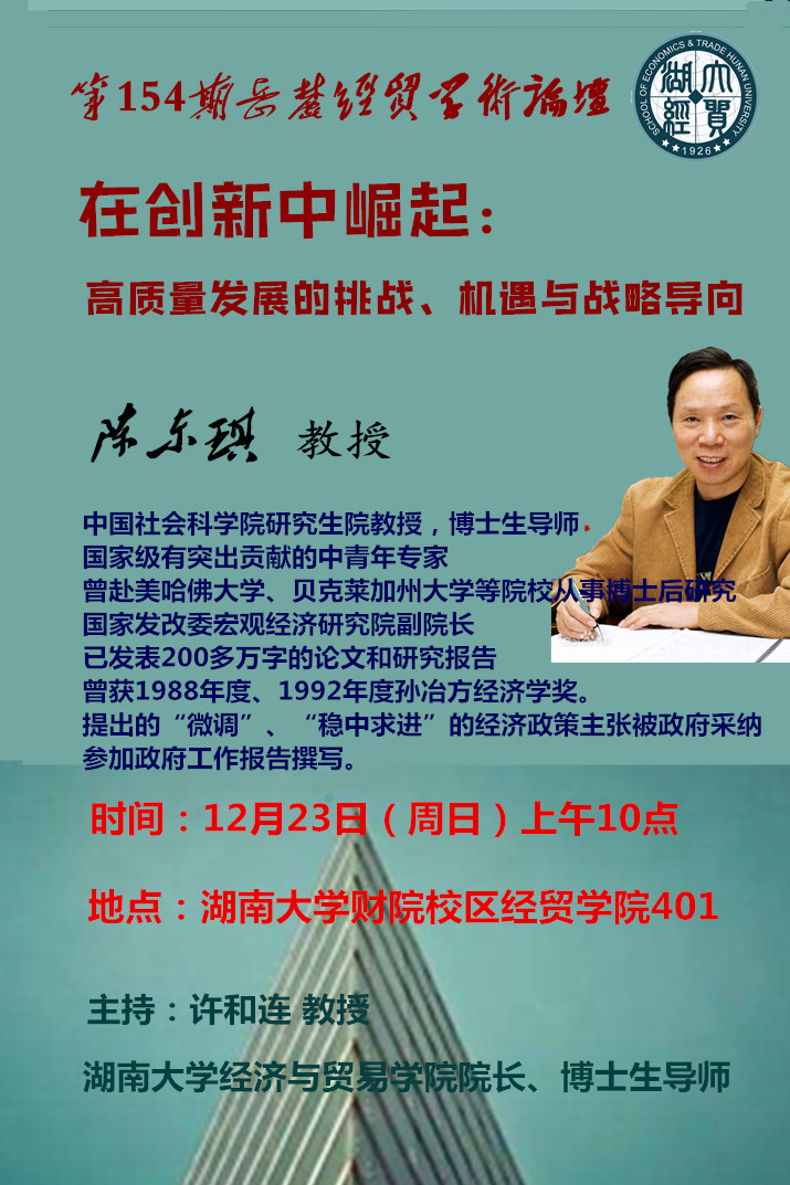 讲座题目:在创新中崛起:高质量发展的挑战、机遇与战略导向