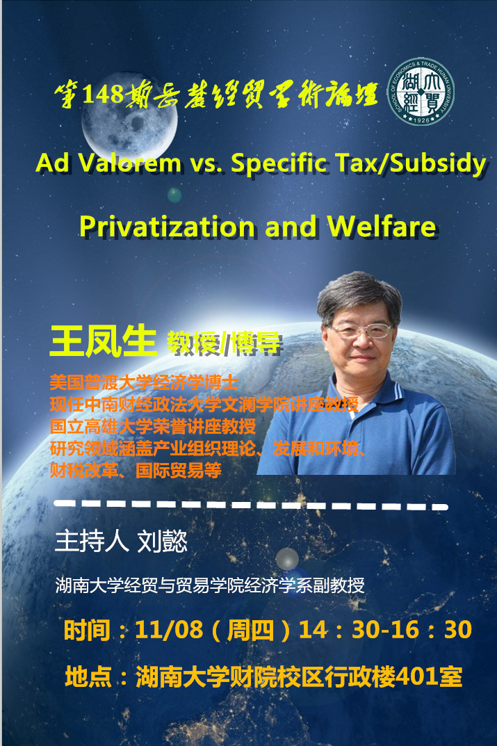 演讲标题:Ad Valorem vs. Specific Tax/Subsidy, Privatization and Welfare