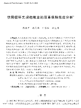 近日,我院侯俊军教授、岳有福博士与合作者(叶家柏、孙克娟博士)合作撰写的学术论文《供需循环实现稳就业的双重保障效应分析》在《财贸经济》2024年第5期刊出。《财贸经济》期刊是由中国社会科学院主管、中国社会科学院财经战略研究院主办的重要学术期刊。