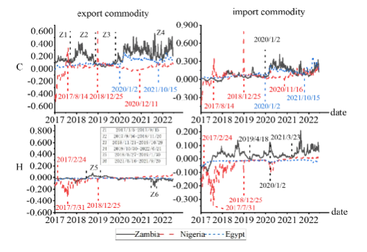 文章以非洲国家主权债券风险为切入点,以不同违约层级的非洲国家(赞比亚、尼日利亚、埃及)的十年期欧债为典型研究对象,构建多个债券风险动态影响系统(汇率冲击-出口/进口大宗商品-债券风险),探究了汇率冲击对非洲国家主权债券风险的动态影响,分析了大宗商品在非洲主权债券风险系统中所扮演的角色。