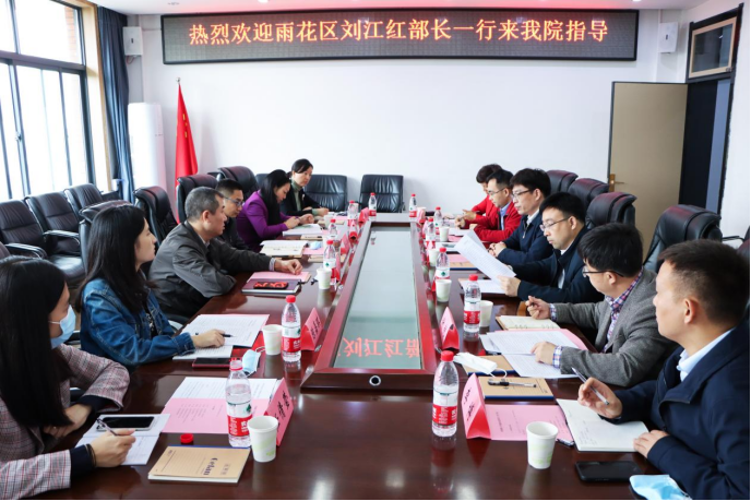 会上,刘江红部长介绍了长沙雨花区的经济、文化、科技等方面的发展,并说明了此行来学院交流的目的。他表示为落实市委政府的指示,推动地方经济发展,建设文化创意中心,湖南雨花以打造“世界非物质文化遗产高地”为目标,推动非遗保护传承与创新发展工作。希望通过和学院合作,成立非遗研究院,在推动地方产业经济发展、科学研究、人才培养、专业培训等方面取得显著的效果。