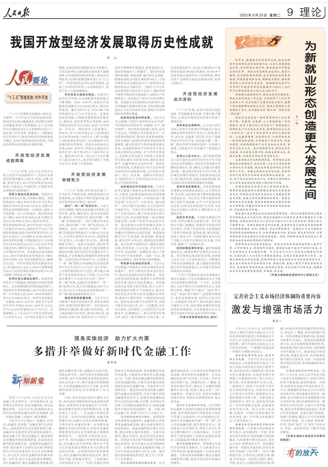 9月29日,在《人民日报》第09版"理论"栏目,yl23411集团教授陈乐一发表署名文章《激发与增强市场活力》。