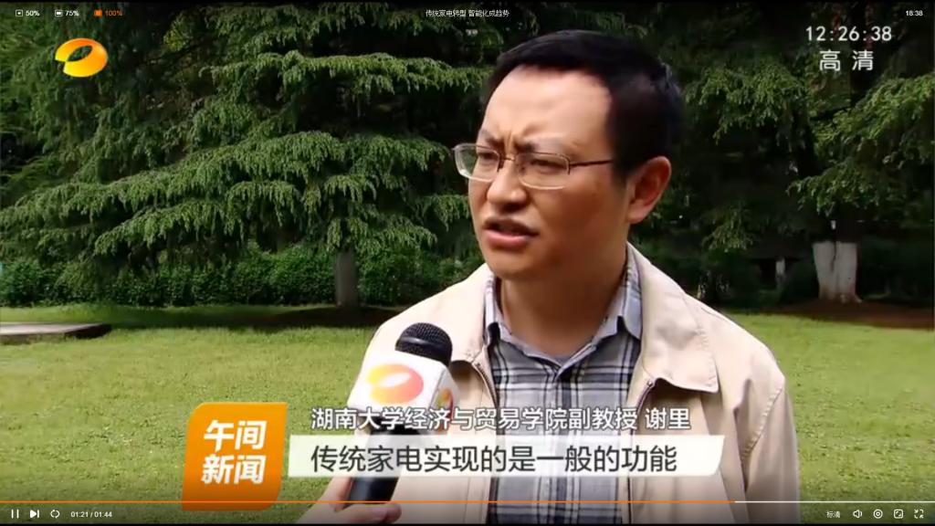 近日,我院院长助理、经济系谢里副教授就现在传统家电销售下降、智能家电销售上涨的经济业态,接受了湖南卫视记者的采访。