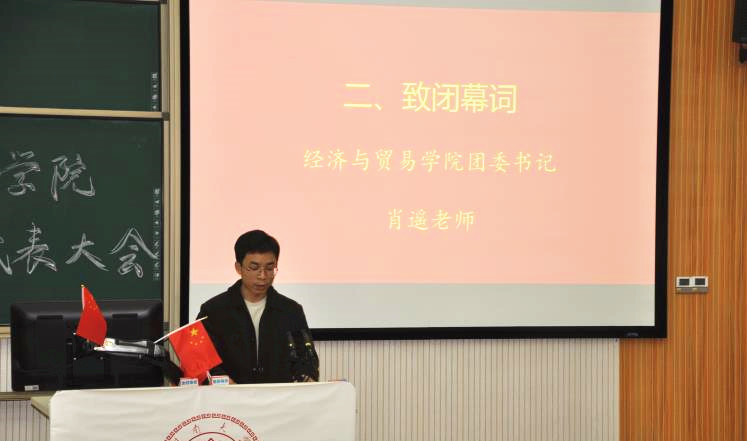 学院团委书记肖遥、研究生辅导员田丽靖分别为学生代表大会和研究生代表大会致闭幕词,希望新一届学生骨干要牢记使命责任,勇于创新,继续推进体制机制改革和工作创新;听取、收集同学们的需求和困难,及时反馈,帮助解决,当好学校学院与同学们之间的桥梁与纽带;不断加强自身学习,切实提升服务同学的能力,为学校学院发展贡献青春力量。