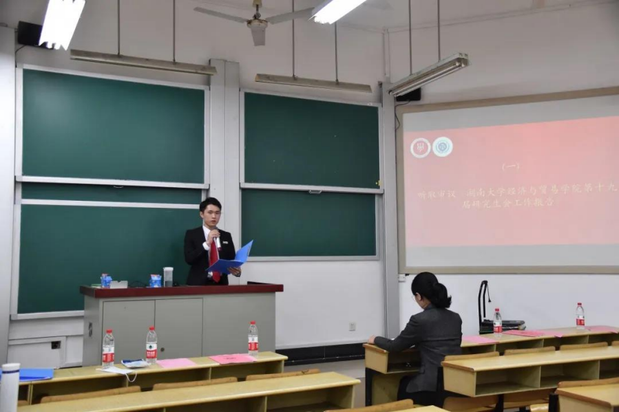 第十九届研究生会主席团成员陈文乐作工作报告