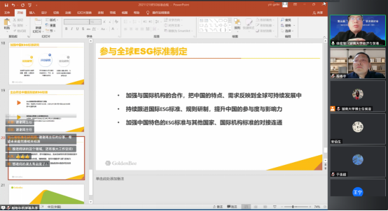 多项企业社会责任相关国家标准起草人、《WTO经济导刊》前社长殷格非研究员演讲的主题为:ESG(环境、社会、治理)标准合规。他认为ESG是指将环境、社会和治理因素用于筛选潜在投资,并通过具体的数据说明了ESG在全球的影响力之大。从时间顺序、投资类型等方面系统地介绍了ESG在中国的发展。同时认为ESG评价依据以英文信息为主,未充分考虑议题在中国的地域性特征,公平性不强,对此他从规则研究、评价研究、量化研究三个方面提出了加强中国ESG标准研究的战略。