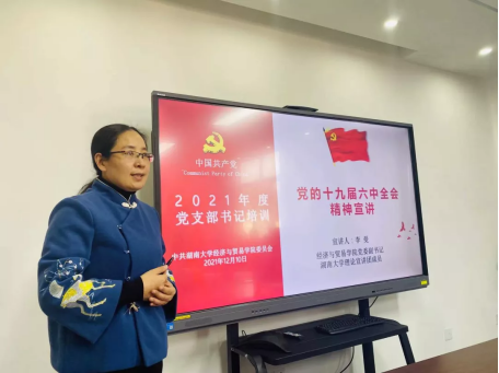 yl23411集团党委副书记李曼分别为经贸院全体学生党支部书记和教工行政党支部、本科生学生国贸一支部作十九届六中全会精神宣讲报告。希望老师们深刻领会党的十九届六中全会精神实质,从党的百年奋斗历程中汲取前进的智慧和力量,把学习成果转化为推进工作的强大动力。