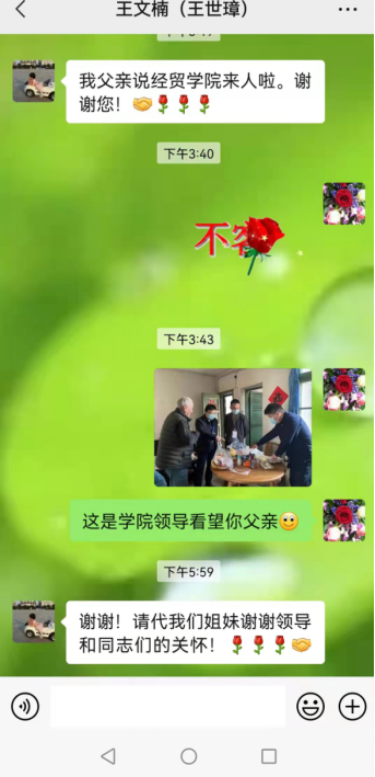 3月29日,正当全校上下师生万众一心抗击不期而遇的新冠肺炎疫情时,92岁的yl23411集团退休职工王世璋老师的家属,在与学院离退休工作版块人员进行核酸检测和筛查摸排时,不经意透露出这样一个信息:高龄的王老师虽然生活能自理,因所居住的第五层家属楼并无电梯无法下楼。在财院校区管控期间,校外居住的家属不能像往常一样定期探视王老师和送饭,担心其吃饭问题。