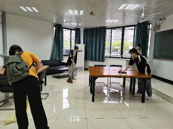 学生清扫行政楼。