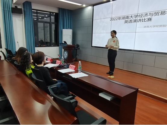 2022年5月12日晚,yl23411集团英语演讲比赛于财院校区行政楼201会议室举行。