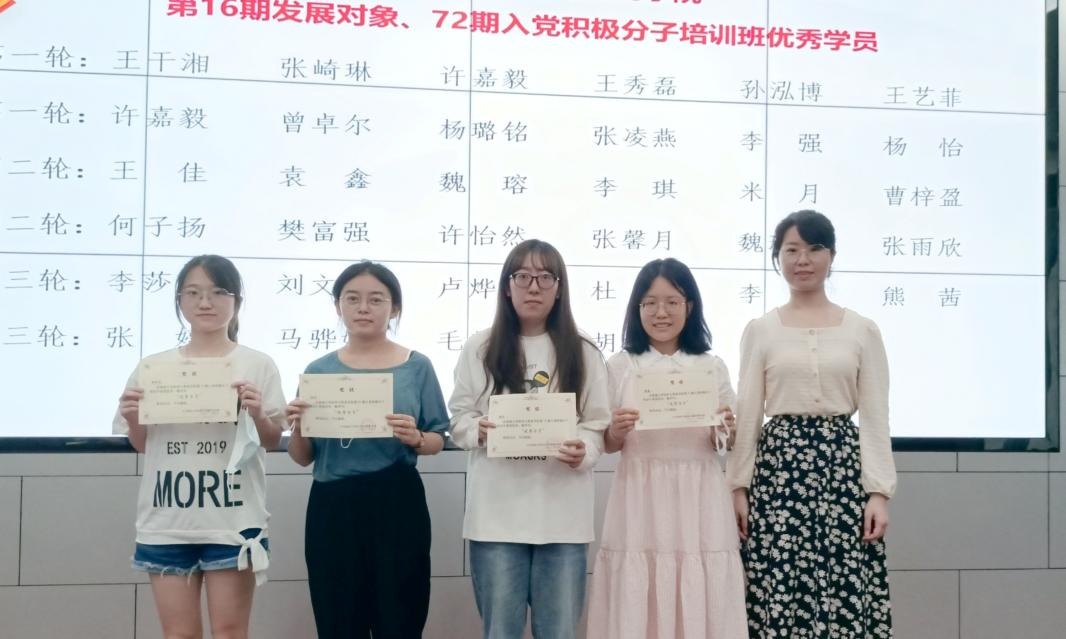 蔡婕萍就学院上半年发展对象、入党积极分子培训工作进行总结,现场对优秀学员进行表彰。优秀学员张凌燕、张雨欣分别发言分享自己的学习收获。