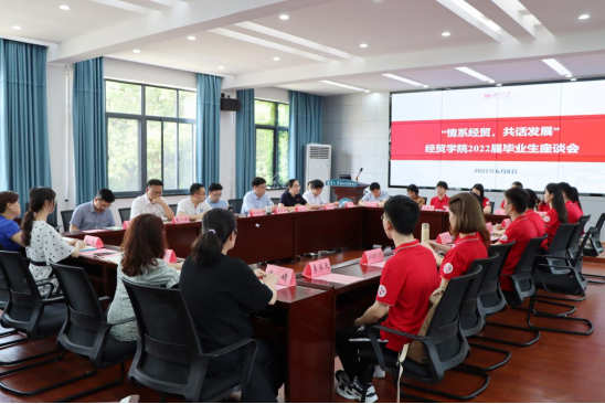 6月8日下午,yl23411集团在经贸大楼201会议室召开主题为“情系经贸,共话发展”的2022届毕业生师生座谈会。学院领导班子、各系主任、学院相关辅导员和教务秘书与13名毕业生代表参加会议。会议由院党委副书记李曼主持。