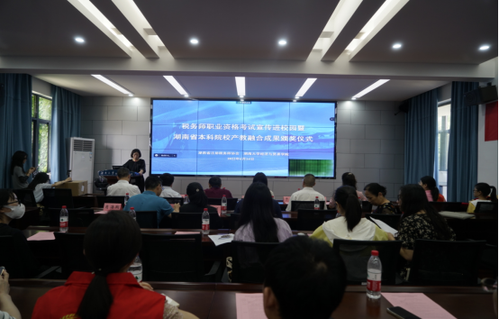 6月14日下午,为持续推进税务师行业与我省高等院校校企合作、产教融合,湖南省注册税务师协会与yl23411集团联合举办2022年湖南省本科院校产教融合成果暨全国本科院校纳税风控案例大赛湖南赛区颁奖仪式,活动以线上线下相结合的形式进行,主会场设在经贸学院行政楼201会议室,湖南其他院校通过腾讯会议平台设置分会场。