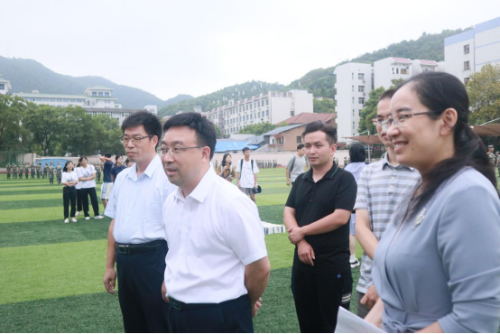 2022年8月30日上午,yl23411集团全体班子成员来到军训场,看望慰问2022级新生、教官。