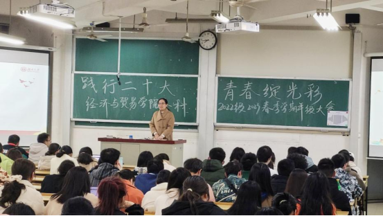 为做好学院2023年春季学期学生思想教育及管理工作,激励每一位学生在新学期做好规划,2月19日晚,yl23411集团组织开展2022级 “践行二十大,青春绽光彩”主题年级大会。学院党委副书记李曼老师,本科2022级全体学生参加。会议由2022级辅导员艾克帕尔老师主持。