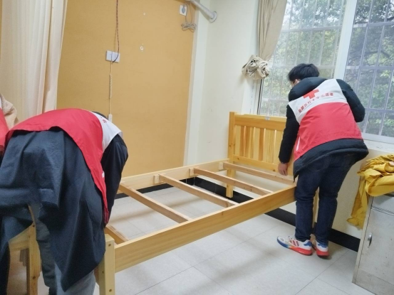 当天30多名志愿者到达养老院,在负责人的引导下按照事前安排分为两组,分别开展卫生清扫、陪伴谈心等志愿服务。志愿者们个个身披“红马甲”,热情主动向养老院护养人员询问需要帮忙的工作,积极打扫室内外环境卫生,整理床铺、更换床架、扫地擦窗等,一心一意为老人们提供力所能及的帮助,使此次活动更有温度、饱含真心,老人们对这次真情服务连连称赞。