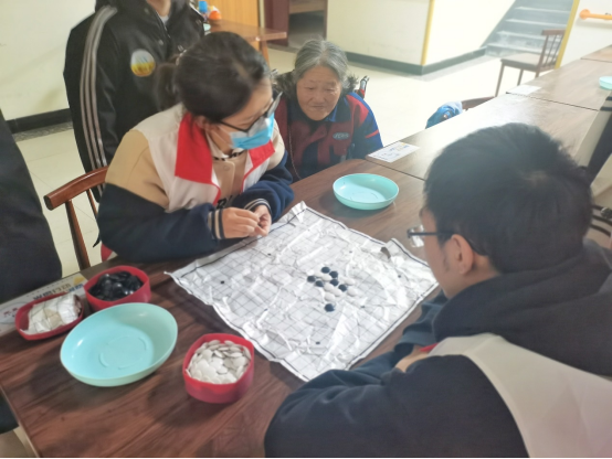 清洁之余,同学们还通过多种方式陪伴老人。有专注倾听老人的故事和心声,用温热笑容融化他们心中的薄冰;有贴心陪伴老人晒太阳、看电视,以温暖话语抚慰他们孤独的心灵;有执子对弈,“针锋相对”只为博得老人莞尔一笑;还有躬身为老人修理指甲,耐心细致地询问和满足他们的需求等等。此时的陪伴,早已不仅仅是轻声细语的问候与温柔细致的服务,更是无数个温暖笑容中传递出的心与心的碰撞和爱与爱的交融。