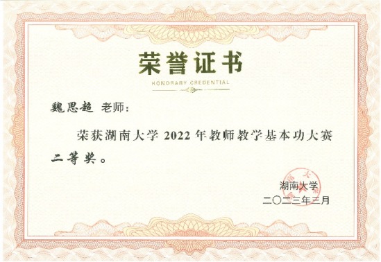 近日,在yL23411永利集团2022年教师教学基本功大赛决赛中,来自全校15个学院的18名教师参加比赛,我院魏思超老师获得二等奖。