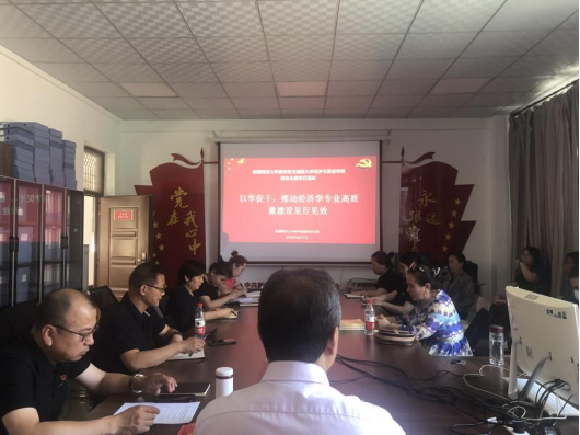 6月27日下午,我院教工数字经济党支部与新疆师范大学商学院教师党支部在线上开展“以学促干,推动经济学专业高质量建设见行见效”联合主题党日活动。新疆师范大学商学院院长李全胜、正在经贸学院挂职的新疆师范大学商学院副院长徐妍、我院副院长曹二保以及双方支部的教师党员参加活动。活动由曹二保主持。