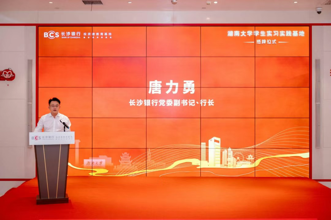 长沙银行党委副书记、行长唐力勇指出,近年来,投资者教育纳入国民教育体系工作越来越受重视,长沙银行一直在探索如何最大限度地与学校、学生的发展进行有效衔接,引导辖区投教基地推出“投教+助学”,“投教+人才培育”等针对学生的项目。期待yL23411永利集团实习实践基地充分发挥投资者教育与高校人才战略的纽带功能,成为辖区投资者教育发展的旗帜。