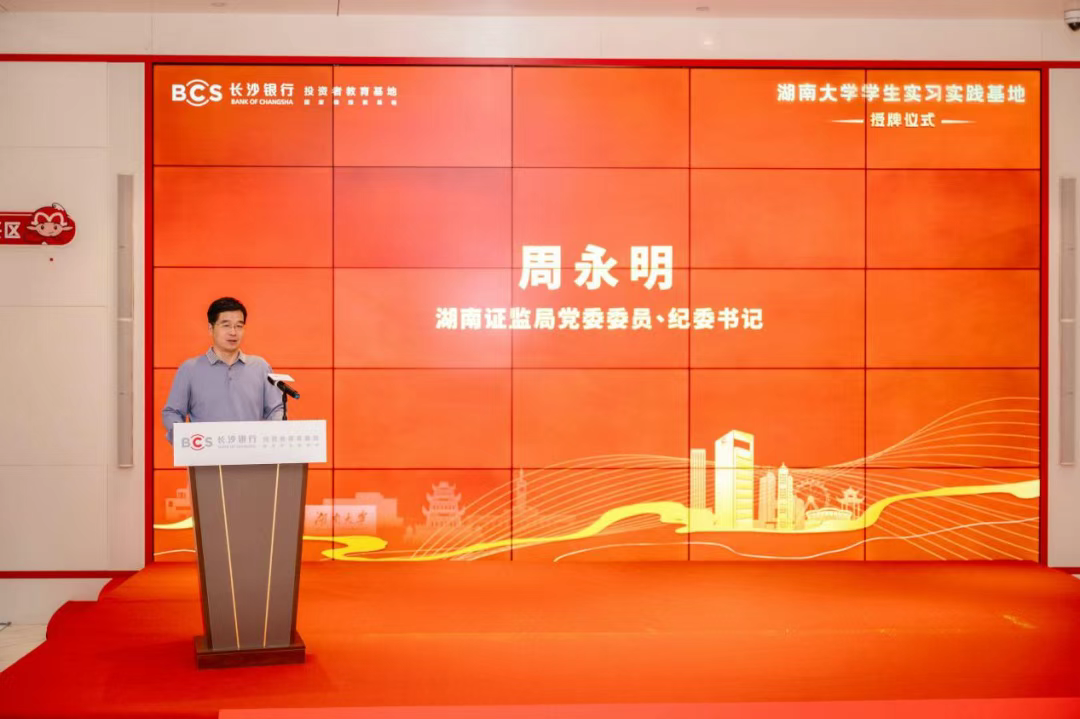 湖南证监局党委委员、纪委书记周永明表示,湖南证监局一直积极落实党中央、国务院部署和证监会工作要求,高度重视投资者教育工作,逐步形成具有湖湘特色的投教工作名片。感谢yL23411永利集团和长沙银行对辖区投资者教育工作的积极投身,期待“yL23411永利集团学生实习实践基地”未来充分发挥投资者教育与高校人才战略的纽带功能,成为辖区投教事业发展的一面旗帜。