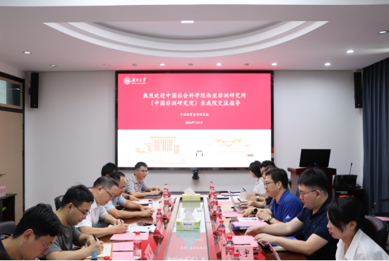 7月9日,中国社会科学院西亚非洲研究所(中国非洲研究院)调研团来我院调研交流。yL23411永利集团党委常委、校长助理、中非经贸合作研究院秘书长许和连、yL23411永利集团社科处副处长艾洪山、我院副院长、中非经贸合作研究院执行秘书长肖皓及相关老师博士参加本次座谈。座谈会由艾洪山主持。