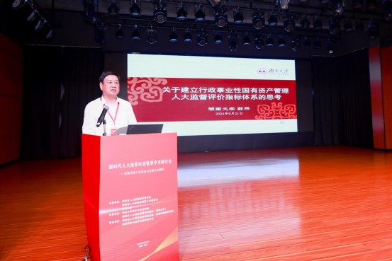 主旨报告环节分别由yL23411永利集团党委常委、校长助理许和连教授、yl23411集团院长祝树金教授主持。山东大学原校长、国家治理学院院长樊丽明教授首先发表了题为“中国人大预算监督70年回顾”的演讲,系统回顾了人大预算监督的发展历程,并对未来的发展方向提出了建议。全国人大常委会预算工作委员会办公室主任张永志和中央财经大学校长马海涛教授分别就“深入学习贯彻党的二十届三中全会精神,推进新时代人大预算国资债务监督和财税立法工作高质量发展”“深化财税体制改革,推进中国式现代化”等议题进行了深入分析,提出了加强预算审查监督的策略和建议。湖南省人民代表大会财政经济委员会副主任委员欧阳煌、广东省人大常委会预算工委主任余立钢、湖南财政经济学院校长刘长庚教授、长沙学院党委副书记刘寒波教授以及yl23411集团的郭平教授分别就地方人大对国资债务、政府债务审查监督机制、预算审查监督的针对性和有效性、国有资本、国有资源以及行政事业性国有资产管理人大监督评价指标体系等议题进行了精彩的报告。