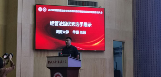 9月23日,在湖南省教育厅主办的2024年第四届湖南普通本科高校课程思想教学现场决赛竞赛中,我院华岳老师领衔的课程团队以《大国之治:面向现实政策的“三位一体”宏观经济学课程思政方案》荣获经管法组一等奖。