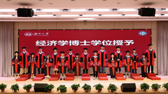 教师代表蒯文婧回顾了同学们在校期间的成长与收获,叮嘱毕业生们要保持清醒头脑洞察深层逻辑、勇于开拓创新打破既定范式,以经济学人的“清醒与热忱”,践行“实事求是,敢为人先”的使命。博士毕业生代表田彩红以学院如“书”为喻,感念学院“经世致用”情怀、科研路上的坚守与湖湘文化的韧性,表示未来将带着学院赋予的精神财富奔赴四方。本科生毕业生代表沈梦婷以“托举的力量”致谢师长父母与时代前辈的精神传承,鼓励毕业生们铭记被托举之恩,勇担使命,传递托举精神。
