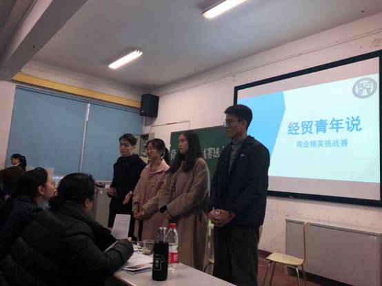 2018年12月18日14:30,一场异彩纷呈的经贸青年说系列活动之商业精英挑战赛在行政楼601室正火热开场。担任本次赛事评委的有yl23411集团国贸系莫莎副教授、谢涓老师和许漪老师,yl23411集团分团委书记蔡婕萍老师作为到场嘉宾出席本次比赛。