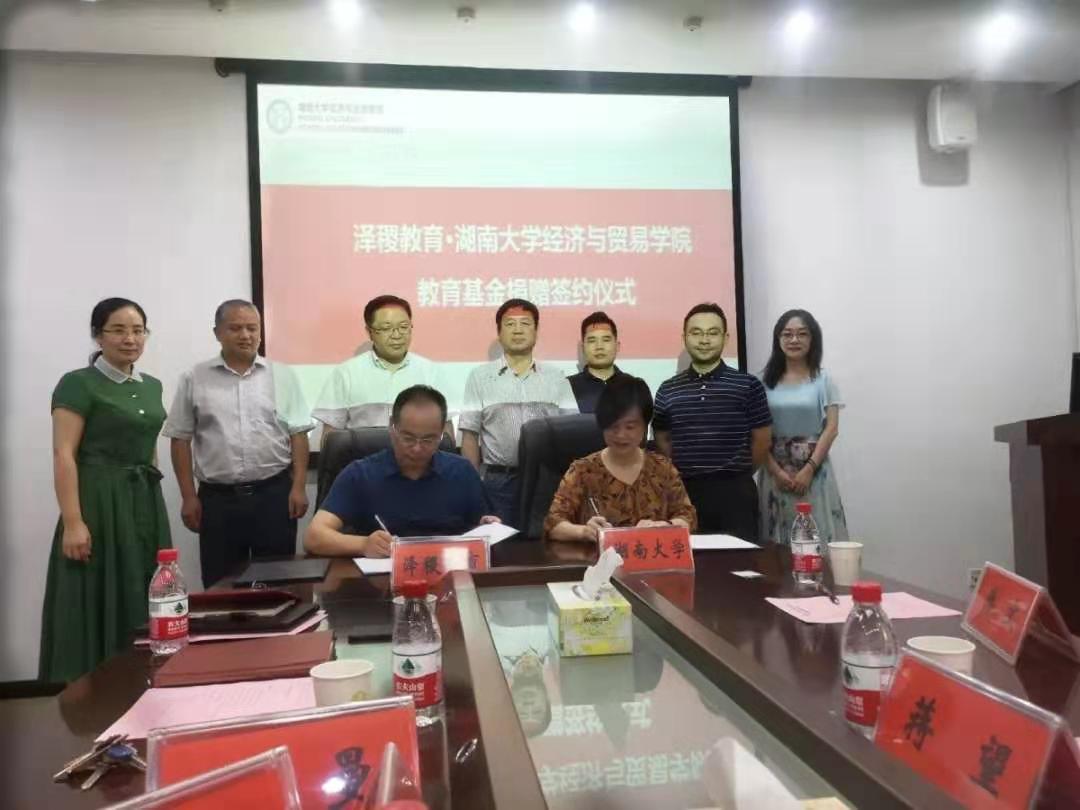 7月29日,上海泽稷教育培训有限公司向我院捐赠设立yl23411集团“经贸卓越人才奖励金”和”经贸励志助学金”。上海泽稷教育培训有限公司董事长蒋望与我校教育基金会秘书长邓利华分别代表校企双方签订了捐赠协议。同时上海泽稷教育培训与我院同时签订了产学研合作协议。我院党委书记郭平、院长许和连、党委副书记谢树玉、副院长肖皓、学工办和校友办公室主任李曼,泽稷教育培训有限公司长沙地区市场总监蒋雯等参加了捐赠仪式。