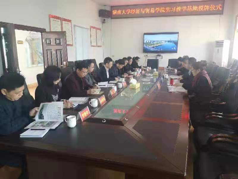 蔡吉伟同志从华容交通、港口、产业、人才等方面介绍了华容县的基础条件,并从沿江开发攻坚、产业发展升级、基础设施提质、城乡环境创优、社会事业同兴、体制机制创新六大方面介绍了华容县的发展战略。肖皓副院长宣读了yl23411集团与华容县人力资源和社会保障局的实习合作文件,并介绍了yl23411集团学科布局、人才培养、智库建设等,认为湖大经贸院经济学系已与华容县企业开展了两期本科生实习活动,学院与华容县人社局有很好的实习合作基础,同时他认为开展实习基地合作是第一步,未来双方在产业选择、经济发展等智库建设方面可以开展更深层次的合作。随后,县人力资源服务中心陈明霞主任从肖皓副院长手中接纳了实习基地的授牌。
