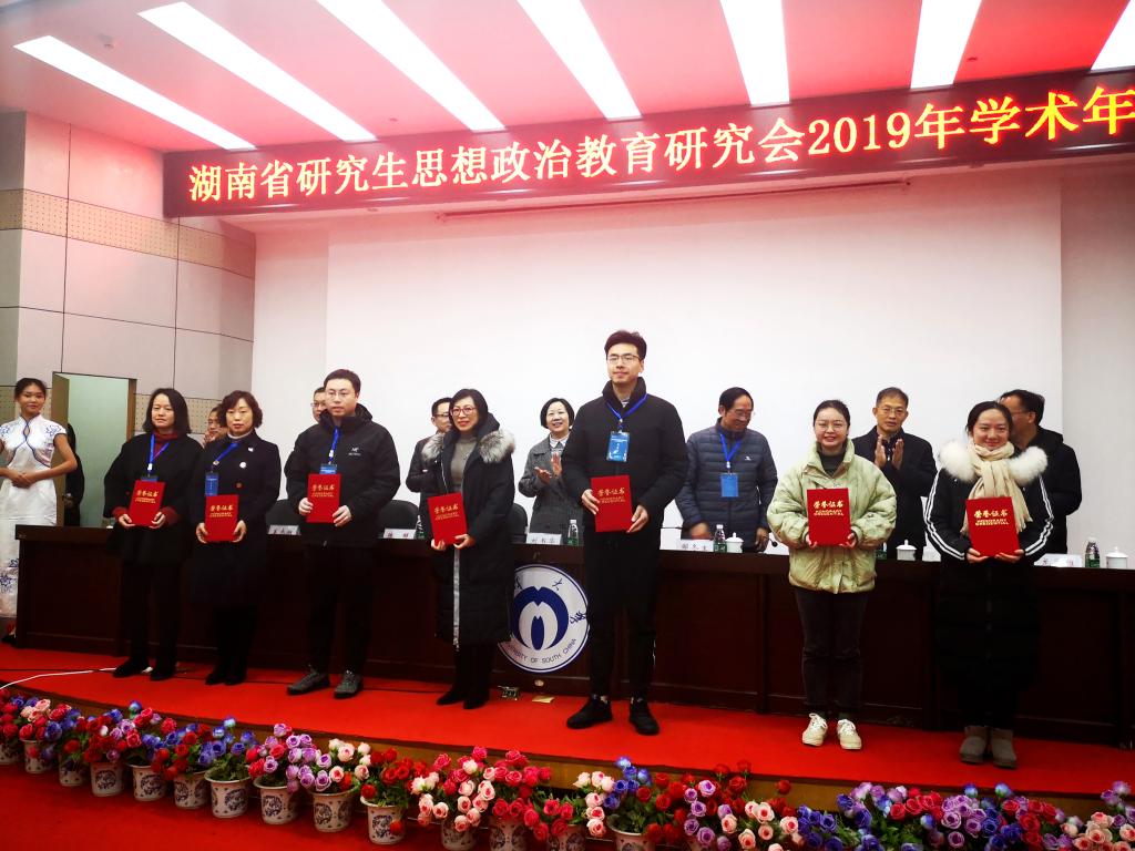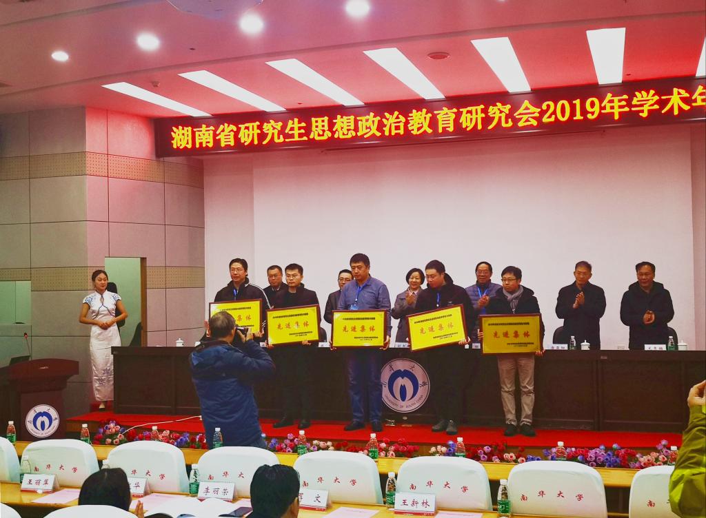 2019年12月28日至29日,湖南省研究生思想政治教育研究会2019年学术年会举行。我校荣获“2019年湖南省研究生思想政治教育研究与实践先进集体”,我院张文静老师荣获“2019年度湖南省研究生思想政治教育研究与实践先进个人”。