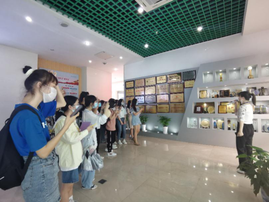 接着,同学们前往山河医药健康产业园。山河医药健康产业园是湖南生物技术孵化中心,孵化公司例如湖南远璟生物技术有限公司、特瑞精密医疗器械有限公司和湖南润美基因科技有限公司等等。同学们观看相关宣传片,了解医药公司在疫情期间做出的巨大贡献。