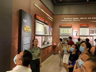进入展厅,一幅幅壮烈的革命历史画面,一个个革命将士的名字,随着讲解员娓娓道来,一一在我们眼前重现。毛泽东同志当年在中国革命最艰难的时期,领导湘赣边界的秋收起义,一手创立了工农革命军第一军第一师,当时这支部队一共只有4000余人。因为当时套用苏联的革命经验——走城市包围农村的斗争路线,毛泽东带领队伍攻打大城市长沙,但是因为敌我差距巨大,部队损失惨重,几度受挫后,革命队伍退到文家市。根据敌强我弱的形势,毛泽东主持召开前敌委员会会议,改变了攻打长沙的计划,决定保存实力,向敌人统治力量薄弱的农村中去坚持武装斗争,发展革命力量,提出了走“农村包围城市”的道路。随后,部队向井冈山进发,行军途中,因遭遇敌人伏击,总指挥卢德铭牺牲。1927年9月29日,毛泽东发现部队军心涣散,在部队到达江西省永新县的三湾村时进行了著名的三湾改编,把党的支部建在连上,铸就了人民军队的灵魂——永远听从党的指挥。改编完成后,起义部队抵达井冈山茨坪,将工农革命军的旗帜插上了井冈山。从此,开始了创建井冈山革命根据地的伟大斗争。秋收起义是中国革命的伟大历史转折点,首次在武装斗争中公开打出中国共产党的旗帜,进一步表明了中国共产党独立领导革命战争的决心,创造了我党我军历史上的“三个第一”,即组建了我党第一支工农革命军队;诞生了我党我军第一面军旗;打响了秋收起义第一枪。随着参观的深入,老师们仿佛看到了秋收起义炮火纷飞的壮烈场面,怀着对革命先烈由衷敬仰的缅怀之情,我们深刻体会到了革命历程的艰难曲折和幸福生活的来之不易。