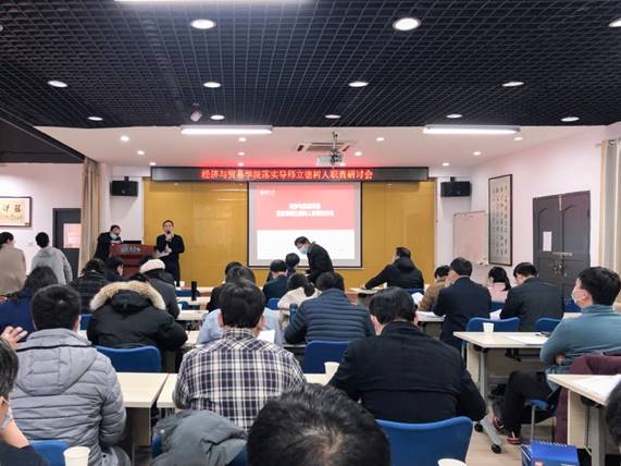 12月22日下午,在财院校区银杏楼二楼会议室,我院召开全院研究生导师会议,学习《教育部关于全面落实研究生导师立德树人职责的意见》以及教育部近期印发的《研究生导师指导行为准则》(教研[2020]12号)等一系列文件精神。全院导师、校经济管理研究中心部分导师及我院研究生教育管理人员等70余人参加了本次会议,会议由副院长曹二保教授主持。
