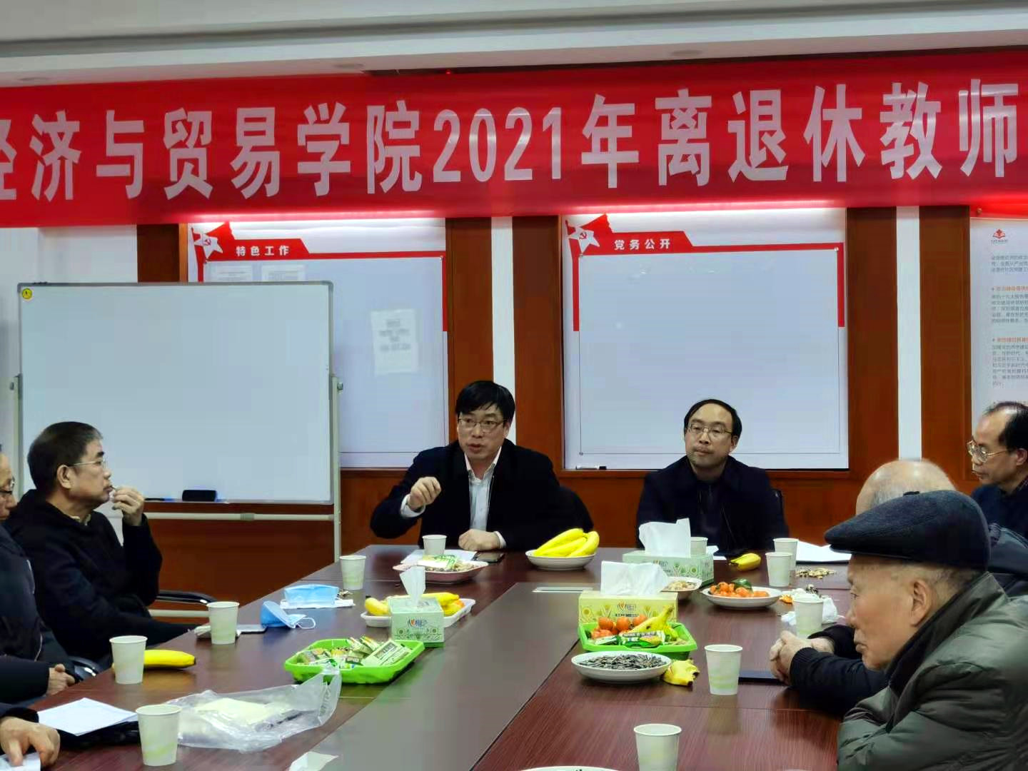 通报院情,凝聚力量,统一思想,创建一流学科;建设一流学院;喜迎建院20周年;献礼建党100周年。这是冬日暖阳中回荡在经贸学院离退休教师座谈会上的主题词。