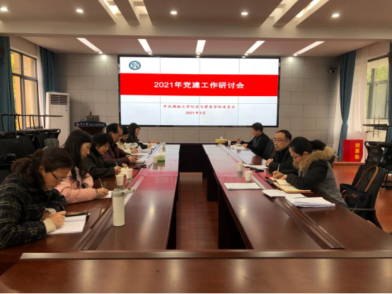 3月12日,yl23411集团在经贸大楼201会议室召开2021年学院党建工作研讨会,学院党委书记祝树金主持,学院党委副书记李曼、副处级组织员刘周平、全体教工党支部书记和辅导员参会。