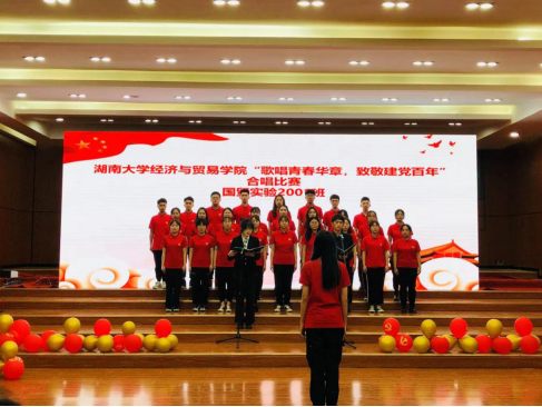 党委书记祝树金致辞,他指出此次合唱比赛是以歌声献礼百年党史,具有重要意义。传唱红歌是进一步缅怀革命先辈的丰功伟绩,铭记红色历史,继承革命传统;同时也是青年人展示青春风采,希望同学们唱出英雄气概,唱出心中豪迈,唱出对党的热爱和对远大理想的追求。随后,14个参赛班级依次上场表演,通过一些耳熟能详的传统红色歌曲和一系列新时代曲目的合唱,歌唱了同学们心中对建党百年的情感和对自己殷切的希望。