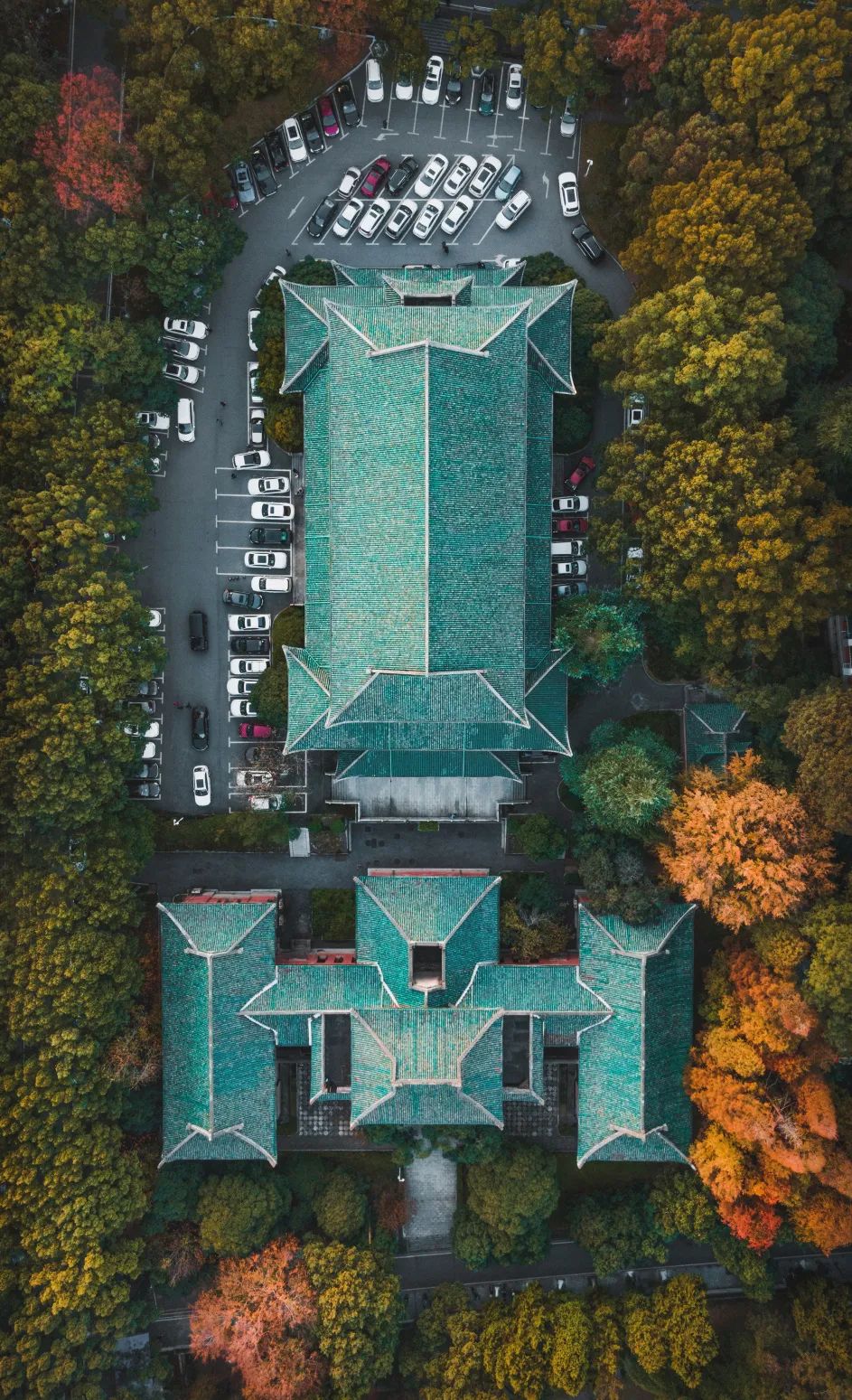 瞰楼头檐角、绿树掩映