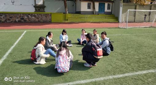 之后,在冬日的暖阳下,我们开始了我们活动的主要环节:敞开心扉谈你我。大家坐在草地上,畅谈我们上大学以来学习生活中的一些事,每个人都谈了一下对于班上每一位同学的最初印象和现在的印象,要说出每一位同学至少两个优点。同学们在交谈中互增了解,加深了同学情谊。同时,通过交流同学们进一步了解了与人交往、沟通的基本技能与技巧:学会尊重对方,学会倾听;宽容开朗,善解人意;言行一致,实事求是;心胸开阔,广交朋友。