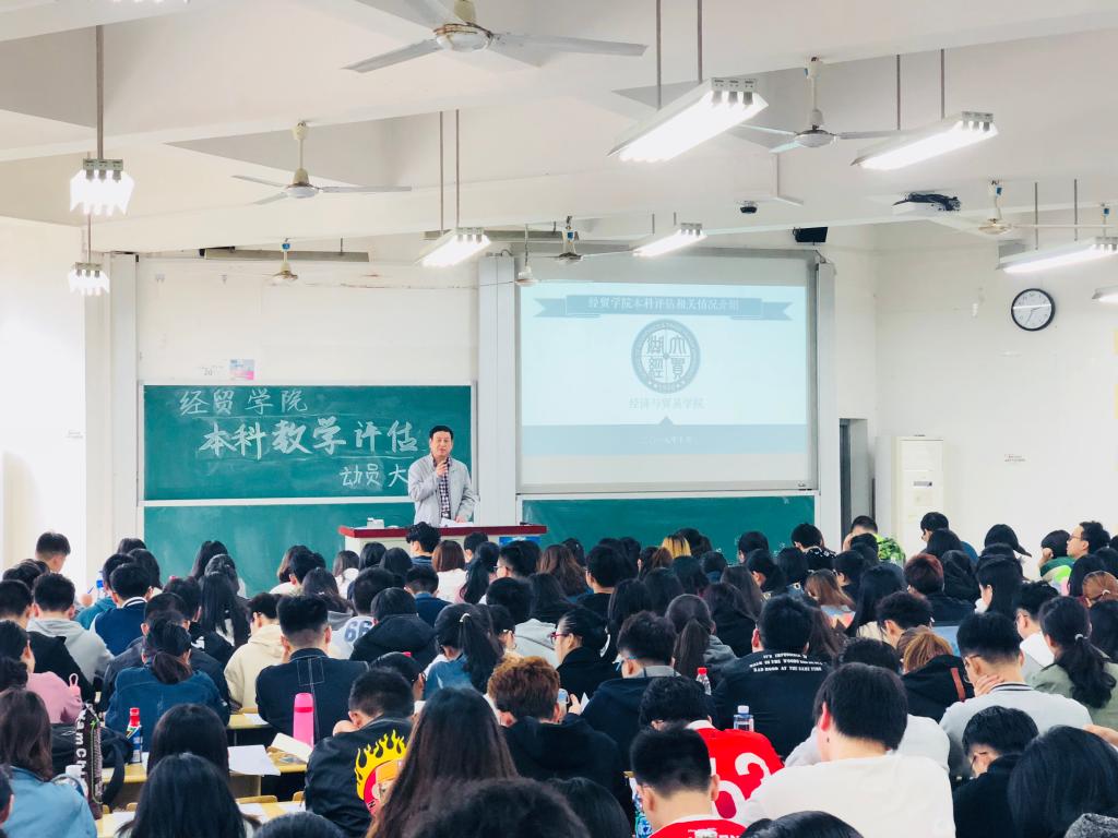 2018年10月16日下午两点半,为更好的迎接本科教学审核评估工作,yl23411集团在财院校区第二教学楼501召开本科教学评估动员大会,到会的嘉宾有yl23411集团党委书记郭平教授,党委副书记谢树玉老师,学工办主任李曼老师,2016级辅导员蔡婕萍老师,参加本次会议的有2015级和2016级本科所有同学。