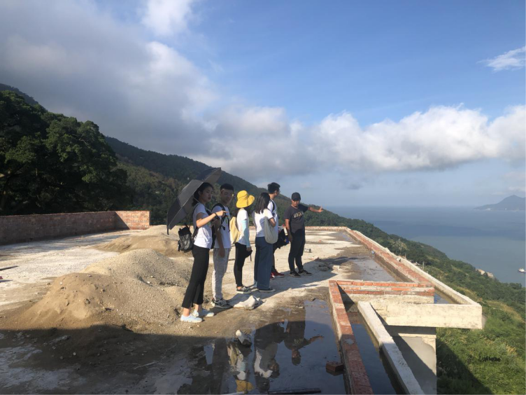 丈量梅花村落,考察实地与民宿建设是实践团的第一项任务。实践团前往在建民宿的建设现状、布局规划、宣传推广等进行了深入学习,得知在建三家民宿皆为专业公司经营投资,租期15年,每家建设14间客房,将于年底对外营业。其中“右见山海间”利用旧房翻新改造成现代化居室,“渔村半舍”保留了旧房风格进行庭院式建设,“云缦观海”民宿则利用山海优势新建一栋,三家民宿皆有面朝大海春暖花开之意境,风格独特,市场前景可观。
