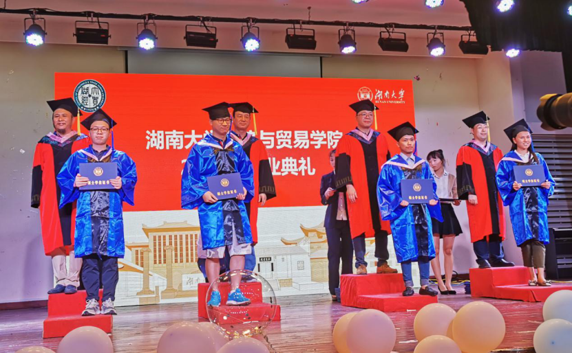 随后,郭平教授宣读《关于2018-2019学年硕士研究生、博士研究生毕业及授予学位的决定》、《关于2019届本科生毕业及授予学位的决定》,许和连教授、祝树金教授、郭平教授、陈乐一教授为毕业生授予学位证书,拨苏正冠,与学位获得者表示祝贺并合影留念。