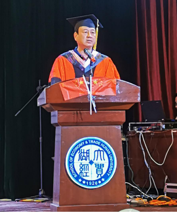 学位授予仪式在宏伟的国歌声中拉开序幕。首先,由院长许和连教授致辞,他从四个方面对毕业生表达了殷切希望:“经世致用,希望同学们始终怀有家国情怀;志存高远,希望同学们树立远大的理想;厚德载物,希望同学们德业双修德才兼备;厚积薄发,希望同学们坚持不懈踏实前行。”他深情寄语“鹰隼试翼,风尘翕张”八个字,并向每一位毕业生献上诚挚的祝愿,祝福所有经贸毕业生能够不忘初心,创造辉煌!