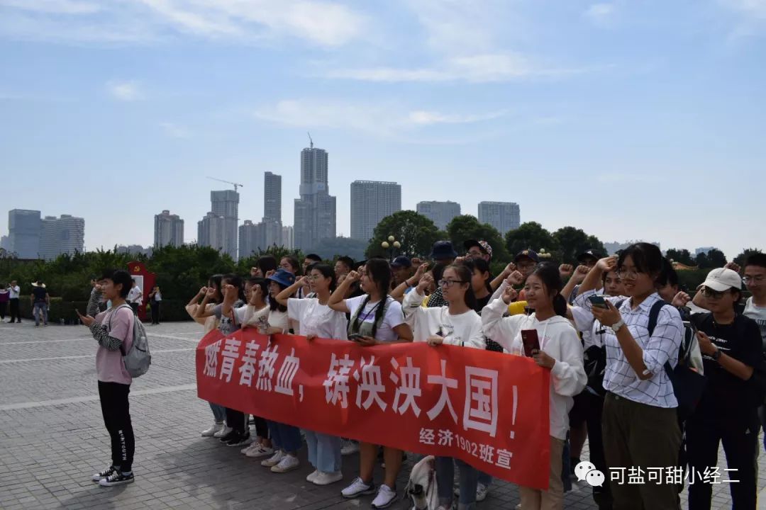 国贸1902班则结合“我的大学我的家”新生导论课程,将国史与校史相结合,以“知校史”促“知中华历史”,并立下了“今日祖国一天天强盛,让我辈仍旧铭记使命”的誓言。