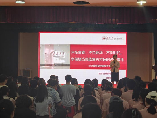 为引导新生全面了解学院并尽快适应新环境,同时树立正确的世界观、人生观、价值观,扣好人生第一粒扣子,9月7日上午,yl23411集团2024级新生专题思政课在财院校区小礼堂开展。学院党委书记邓利华以“不负青春,不负韶华、不负时代,争做堪当民族复兴大任的时代青年”为主题,为2024级全体新生讲授思政大课。会议由学院党委副书记李曼主持,全体2024级经贸院本硕博新生参加会议。学院党委书记邓利华围绕时间、空间介绍了学院的办学历程和治学精神,强调了学习院史和传承“经世致用”精神的重要性。她指出,“湖大经济源几许,多脉合流厚底蕴”,鼓励同学们在掌握专业知识的同时,也要深入了解学院的历史,成为具有“经世致用,明德维新”精神的经贸人才。