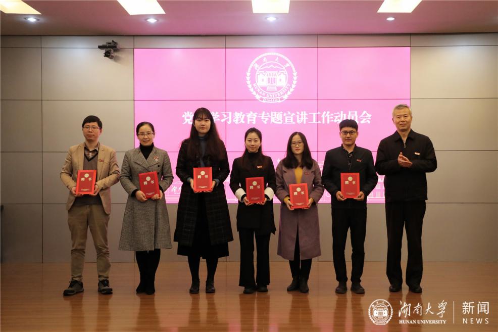会上,校党委副书记陈伟作动员讲话并为宣讲团成员颁发聘书,我院党委书记祝树金,党委副书记李曼,辅导员老师蔡婕萍被选聘为宣讲团讲师。截止目前,我院教师中已有8人被选聘为该宣讲团成员。